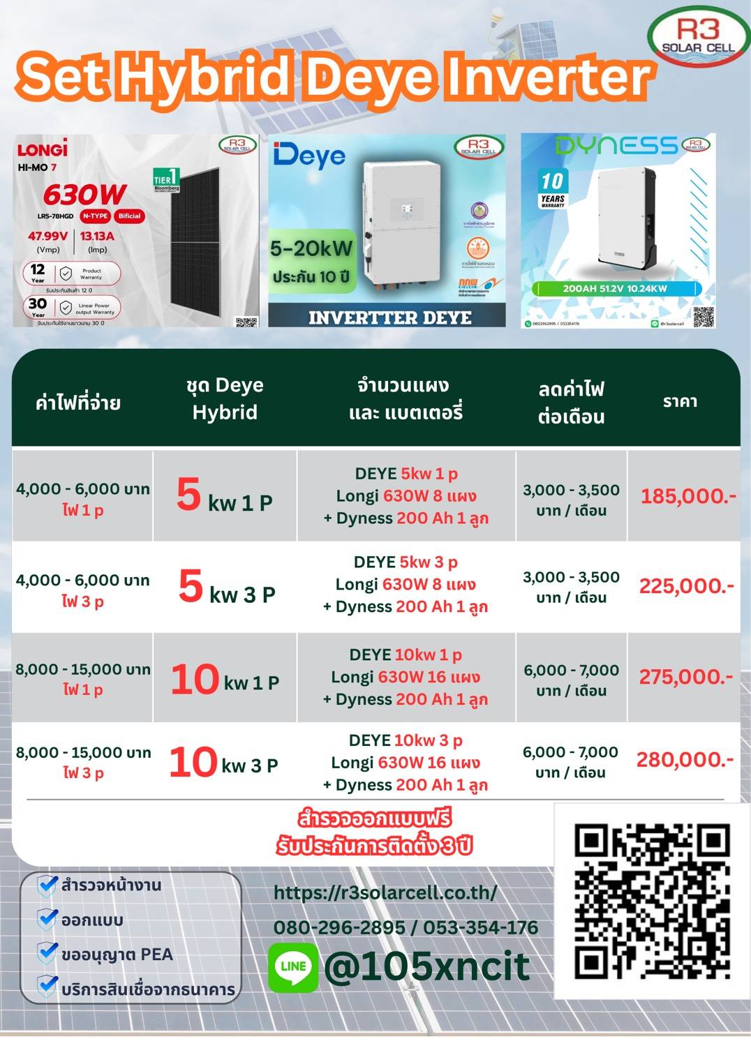 ไฮบริด DEYE +Dyness Batt Lithium 10 kw จังหวัดแพร่