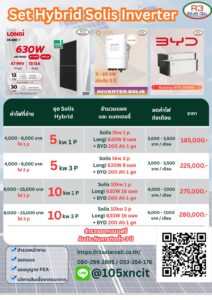 ชุดโซลาร์เซลล์ระบบไฮบริดSolis + BYD Batt Lithium 10 kW พร้อมติดตั้ง