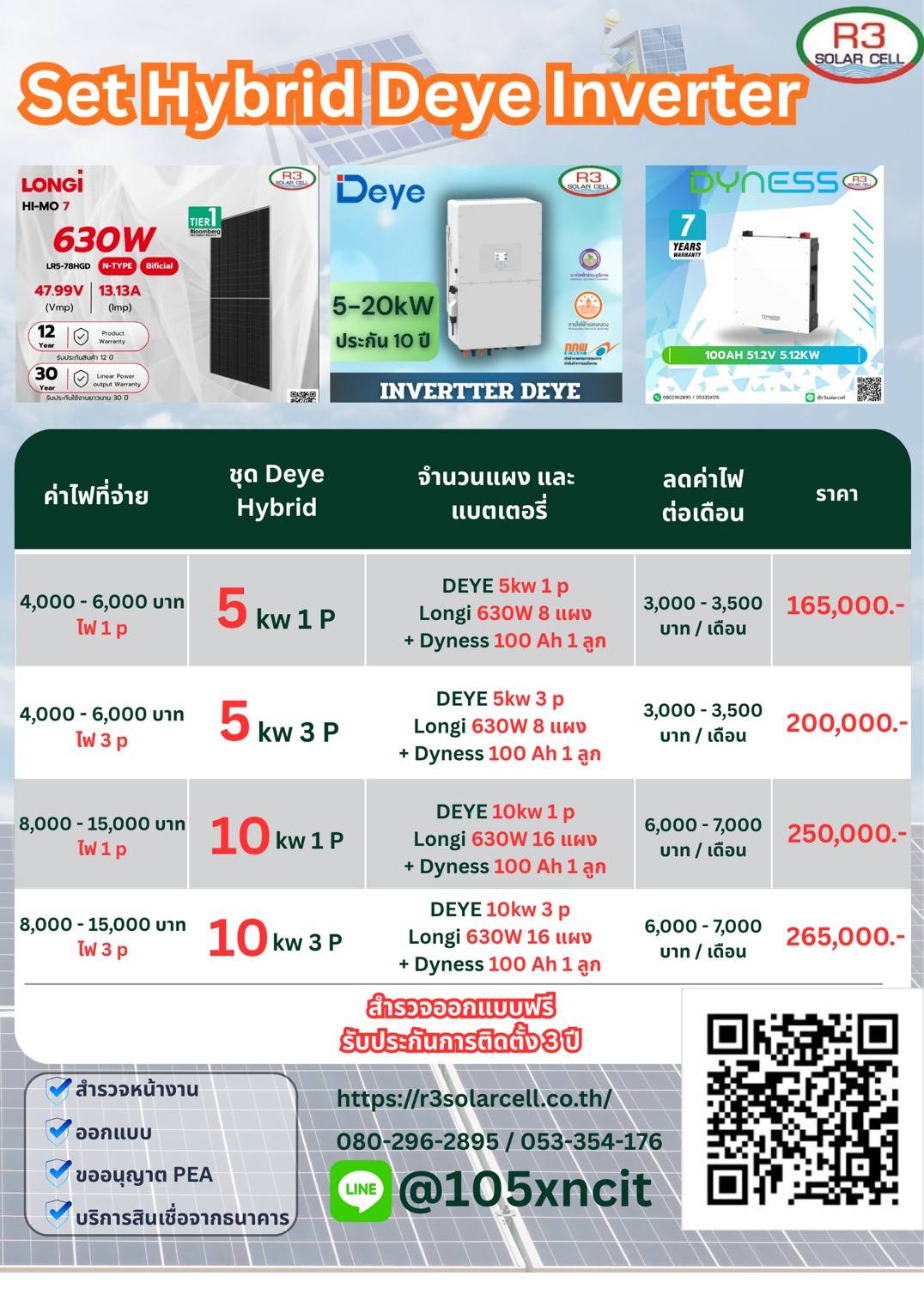 ไฮบริด DEYE +Dyness Batt Lithium 5 kw จังหวัดแพร่