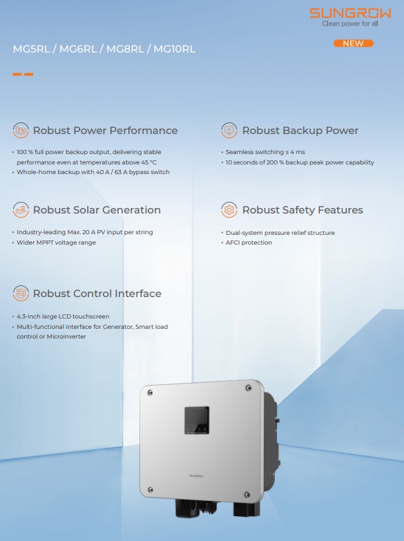 Sungrow SH5.0RS (หรือที่รู้จักในรหัสตระกูล MG) ซึ่งเป็น Hybrid Inverter ขนาด 5kW 1 เฟส รุ่นยอดนิยมสำหรับบ้านพักอาศัย มาพร้อมจุดเด่นที่เน้นความคุ้มค่าและเทคโนโลยีที่ทันสมัยครับ 🏠⚡
